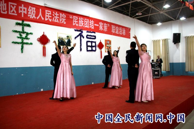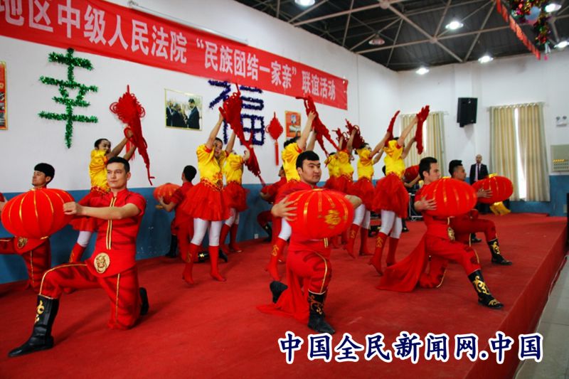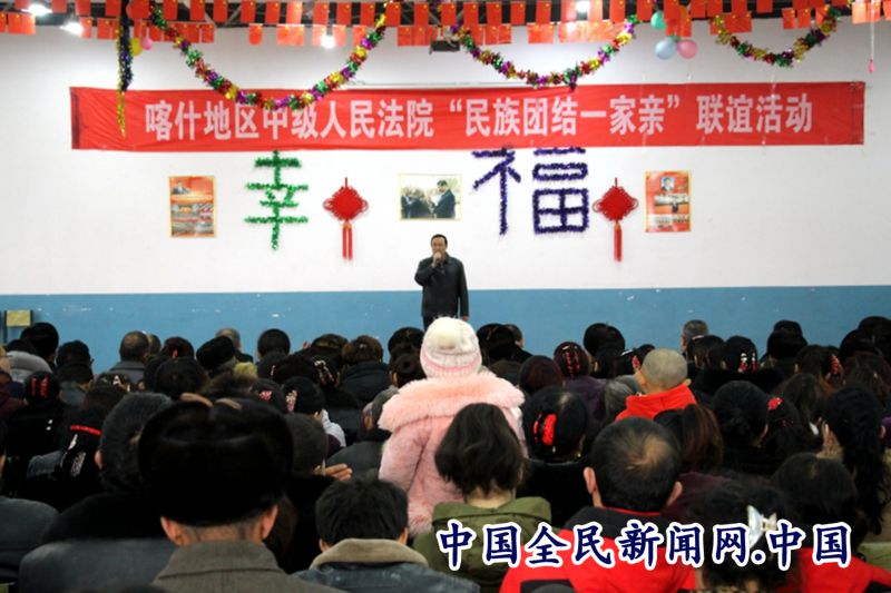 全民公众讯(王新科)冬去春来,又是一年好春景。2月16日,在元宵佳节即将到来之际,喀什地区中级人民法院干警与伽师县江巴孜乡5村村民欢聚一堂,隆重举行“民族团结一家亲”联谊活动。中院党组副书记、院长阿不力克木·台外库力、在家党组班子成员、审判委员会专委、退休老干部代表及全体干警参加了联谊活动。